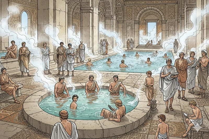 Les thermes de Cluny, construits au tournant des Ier et IIe siècles, constituaient le plus grand établissement thermal de Lutèce avec une superficie d'environ 6 000 m². Le frigidarium, salle des bains froids, est aujourd'hui la pièce la mieux conservée et demeure l'unique salle thermale encore voûtée en France. Sa voûte d'arêtes culminant à près de 14 mètres de hauteur compte parmi les vestiges antiques les plus monumentaux du nord de l'Europe. Cette conservation exceptionnelle s'explique par l'utilisation continue du lieu : au XVe siècle, le frigidarium abrita un jardin suspendu sur sa voûte, puis servit d'entrepôt de vin au XVIIIe siècle, préservant ainsi cette prouesse de l'architecture romaine.