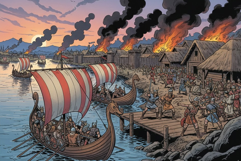 En mars 845, une flotte de 120 navires vikings menée par le chef Reginherus (alias le légendaire Ragnar Lodbrok) remonta la Seine avec plus de 5000 guerriers pour assiéger Paris. Charles le Chauve divisa son armée en deux sur chaque rive, mais les Vikings attaquèrent le côté le plus faible, pendirent 111 prisonniers sur une île en l'honneur d'Odin, et pillèrent la ville le jour de Pâques. Mais le triomphe tourna au cauchemar : une terrible épidémie de dysenterie (diarrhée sanglante) ravagea les rangs vikings pendant leur occupation de Paris. Les Parisiens attribuèrent cette maladie à la vengeance divine de Saint Germain. Ironiquement, plus de guerriers nordiques périrent de diarrhée que lors des combats !