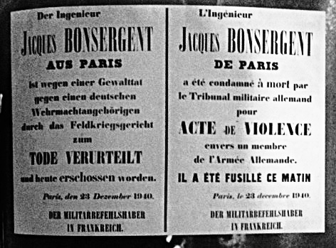 Il fut le premier civil parisien fusillé pendant l'occupation allemande, durant la deuxième guerre mondiale
