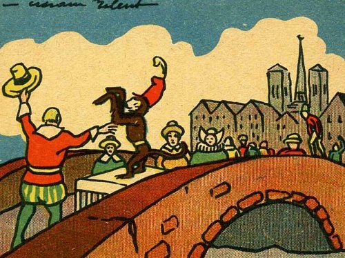 À des dresseurs de singes qui payaient leur droit de traverser les ponts avec les sous gagnés grâce aux numéros de leurs primates.